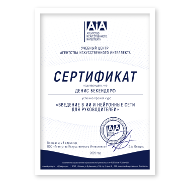 Этот курс предлагает комплексное введение в мир искусственного интеллекта (ИИ) и генеративных нейросетей, ориентированное на применение в бизнесе. Участники получат глубокие знания о ключевых технологиях и алгоритмах ИИ, ознакомятся с рынком ИИ и его основными технологиями, а также научатся применять ИИ в своей отрасли. Курс включает практические занятия и мастер-классы по работе с языковыми и диффузионными моделями, такими как GPT, Stable Diffusion и другими. Особое внимание уделяется реальным кейсам и практическому применению ИИ для решения бизнес-задач, повышению эффективности и автоматизации процессов.